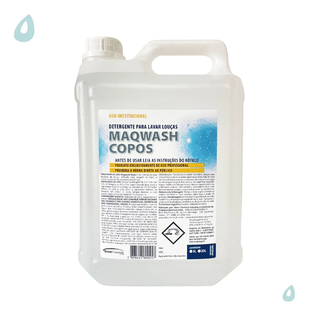 Detergente lava-louças para lavagem de copos e utensílios em máquinas automáticas de lavar, através de dosadores eletrônicos.